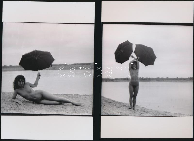 Leírás: cca 1977 Az esernyő védelmében, 7 db finoman erotikus fénykép, modern nagyítások, 10x15 cm / 7 erotic photos, 10x15 cm