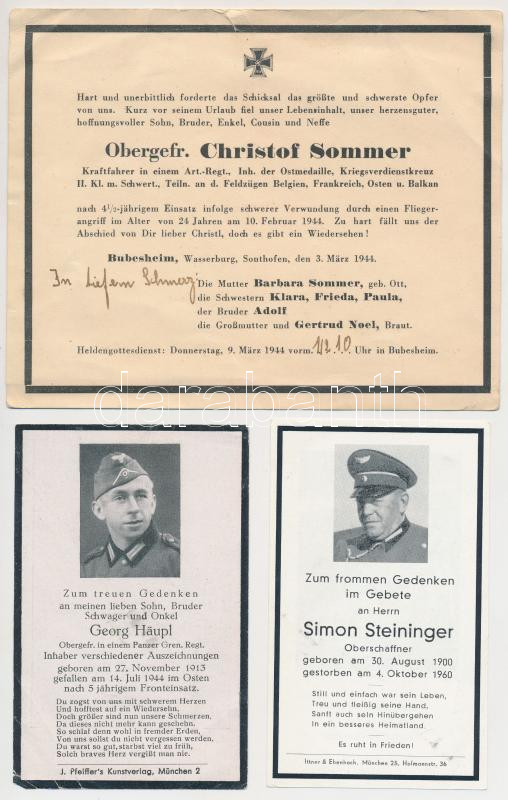 1944-1960 3 német katona halotti értesítője / German soldiers' de... https://www.darabanth.com/hu/266-Gyorsarveres/266.0/Festmeny-mutargy-papirregiseg-egyeb/Militaria~23/1944-1960-3-nemet-katona-halotti-ertesitoje-German-soldiers-death-announcements~II1336193
