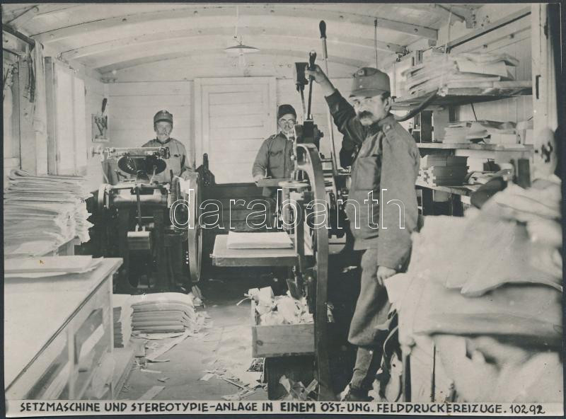 cca 1910 Betűszedő és nyomólemez egy osztrák-magyar tábori nyomdában,... https://www.darabanth.com/hu/266-Gyorsarveres/266.0/Festmeny-mutargy-papirregiseg-egyeb/Militaria~23/cca-1910-Betuszedo-es-nyomolemez-egy-osztrak-magyar-tabori-nyomdaban--becsi-sajtofoto-s~II1334709