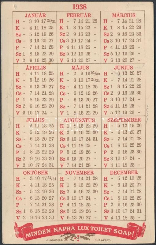 1938 "Kellemes ünnepeket!" kártyanaptár, 15x10cm https://www.darabanth.com/hu/266-Gyorsarveres/266.0/Festmeny-mutargy-papirregiseg-egyeb/Nyomtatvanyok~25/1938-Kellemes-unnepeket-kartyanaptar-15x10cm~II1334347