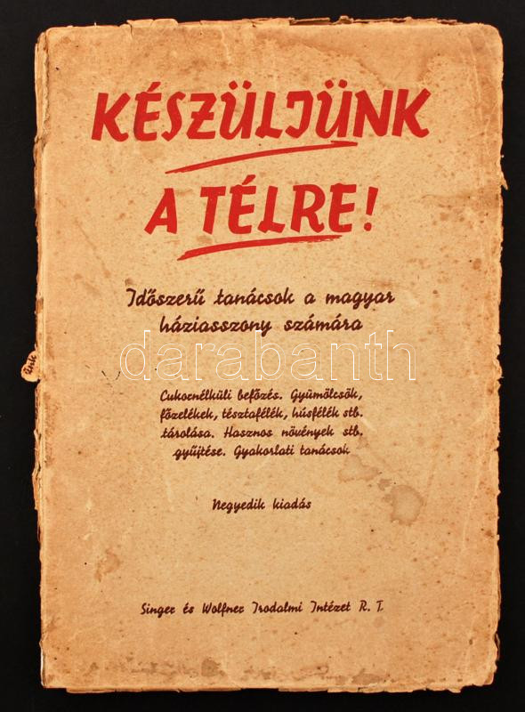 1940 Készüljünk a télre! Időszerű tanácsok a magyar háziasszony számár... https://www.darabanth.com/hu/266-Gyorsarveres/266.0/Festmeny-mutargy-papirregiseg-egyeb/Nyomtatvanyok~25/1940-Keszuljunk-a-telre-Idoszeru-tanacsok-a-magyar-haziasszony-szamara-pp100-24x17cm~II1333643