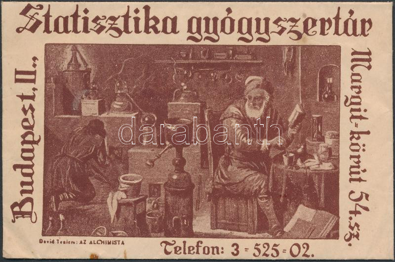 Leírás: 1942 dr. Dax Albert nyug. közkórh. főorvos receptje "Statisztika" gyógyszertári borítékban