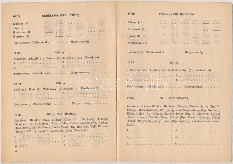 1953-58 Nemzetek közötti atlétikai viadalok műsörfüzetei, nagyrészt ce... https://www.darabanth.com/hu/266-Gyorsarveres/266.0/Festmeny-mutargy-papirregiseg-egyeb/Nyomtatvanyok~25/1953-58-Nemzetek-kozotti-atletikai-viadalok-musorfuzetei-nagyreszt-ceruzaval-kitoltve-Er~II1331315