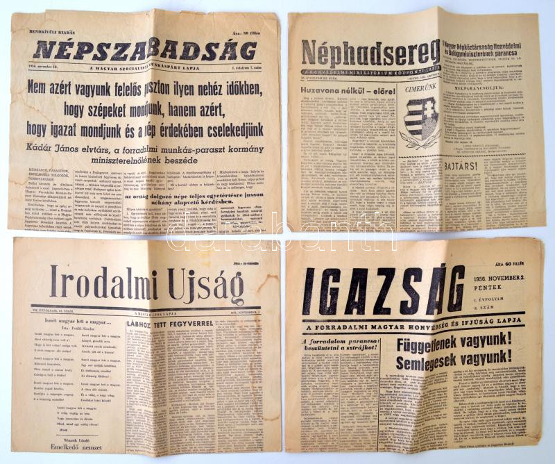 1956 okt. 29-nov. 20. Különféle magyar napilapok 9 száma, köztük Néps... https://www.darabanth.com/hu/266-Gyorsarveres/266.0/Festmeny-mutargy-papirregiseg-egyeb/Nyomtatvanyok~25/1956-okt-29-nov-20-Kulonfele-magyar-napilapok-9-szama-koztuk-Nepszabadsag-Nephadsereg~II1335211