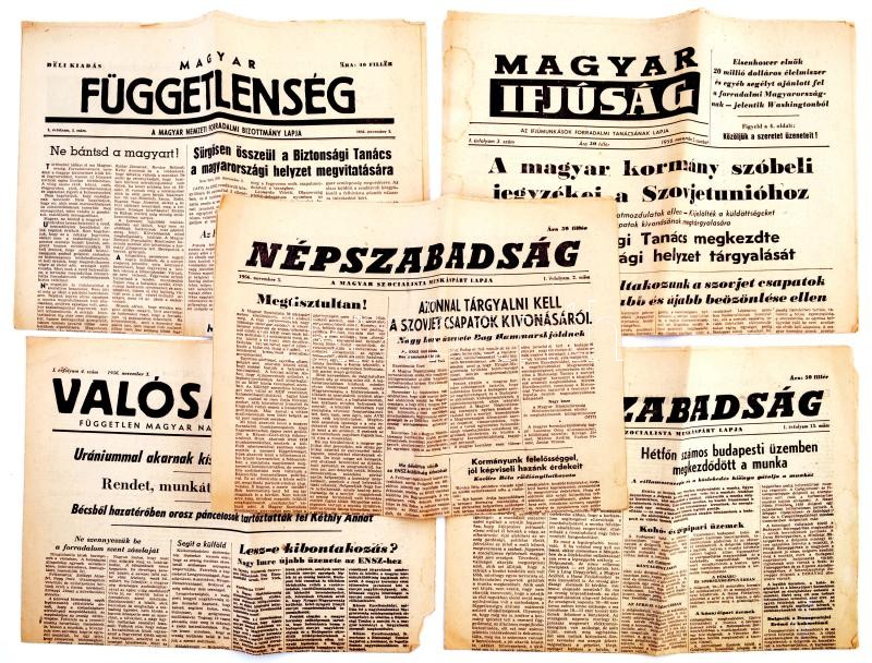 Leírás: 1956 okt. 29-nov. 20. Különféle magyar napilapok 9 száma, köztük Népszabadság, Néphadsereg, Igazság, Magyar Függetlenség, Valóság, Magyar Ifjúság