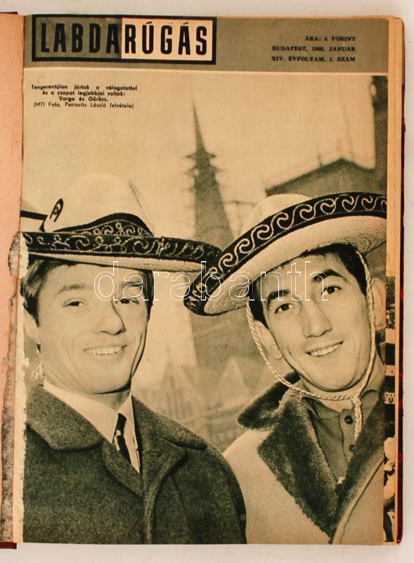 1968 A Labdarúgás c. folyóirat, a Magyar Labdarúgó Szövetség havilapjának teljes évfolyama, 12 szám egybekötve. Számos korabeli fotóval, illetve érdekes, mára kordokumentumnak számító cikkekkel.