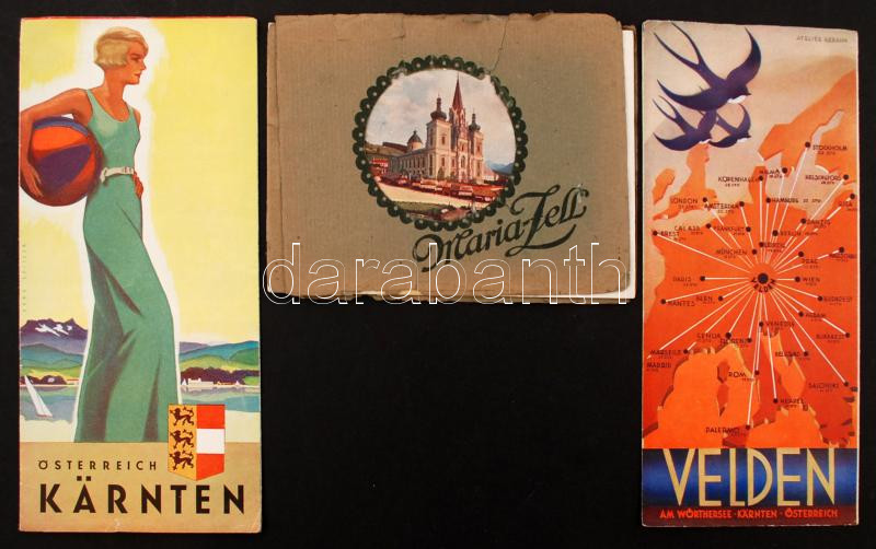 Leírás: cca 1930-40 Vegyes, osztrák, fotókkal illusztrált turisztikai kiadványok német nyelven, 3db, különböző méretben és minőségben