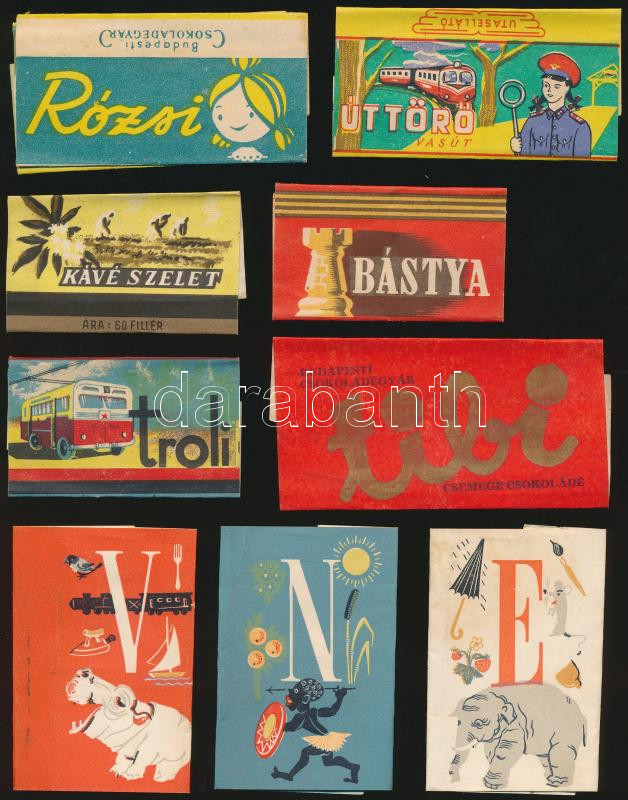 cca 1960-70 Magyar, retró csokoládépapírok, különböző méretben, 10db /... https://www.darabanth.com/hu/266-Gyorsarveres/266.0/Festmeny-mutargy-papirregiseg-egyeb/Nyomtatvanyok~25/cca-1960-70-Magyar-retro-csokoladepapirok-kulonbozo-meretben-10db-chocolate-papers~II1235207