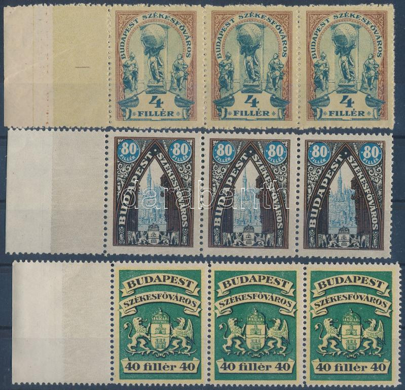 Leírás: 1927 Budapest Székesfőváros 4f, 40f, 80f vízszintes 3-as csíkokban