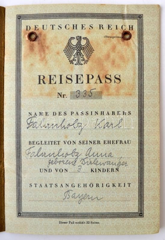 1930 Fényképes német birodalmi útlevél házaspár és gyermekeik részére ... https://www.darabanth.com/hu/266-Gyorsarveres/266.0/Festmeny-mutargy-papirregiseg-egyeb/Okmanyok~15/1930-Fenykepes-nemet-birodalmi-utlevel-hazaspar-es-gyermekeik-reszere-kiallitva-az-egyi~II1332654