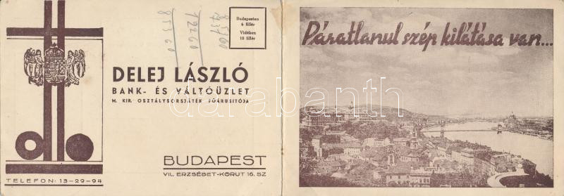 Leírás: 1937 Delej Bank- és Váltóüzlet osztálysorsjáték reklám nyomtatvány