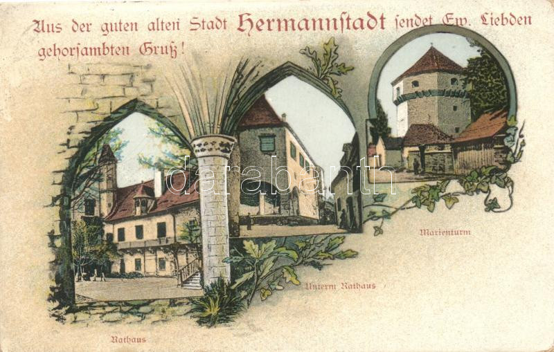 Nagyszeben, Hermannstadt, Sibiu; Városháza, Mária torony / town hall, ... https://www.darabanth.com/hu/266-Gyorsarveres/266.0/Kepeslapok/Erdely~300058/Nagyszeben-Hermannstadt-Sibiu-Varoshaza-Maria-torony-town-hall-tower-floral-EK~II1336002