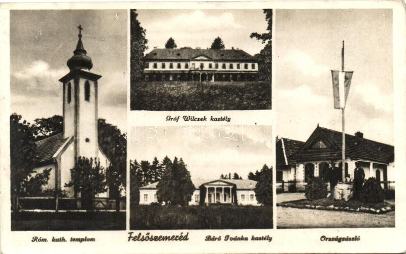 Felsőszemeréd, Horné Semerovce; Római Katolikus templom, Gróf Wilczek kastély, Báró Ivánka kastély, Országzászló, kiadja Polgár I. / church, castle, national flag (EK)