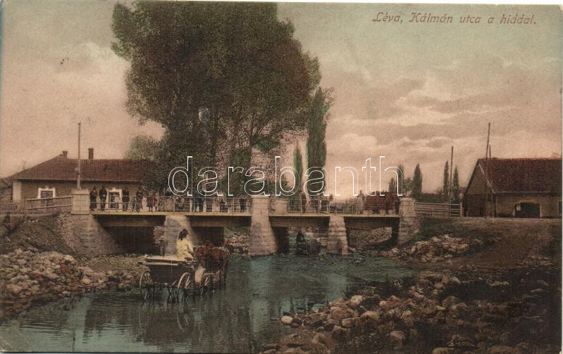 Léva, Levice; Kálmán utca a híddal, lovaskocsi, kiadja Schulcz Ignác /... https://www.darabanth.com/hu/266-Gyorsarveres/266.0/Kepeslapok/Felvidek~300059/Leva-Levice-Kalman-utca-a-hiddal-lovaskocsi-kiadja-Schulcz-Ignac-street-with-bridge-hors~II1333428