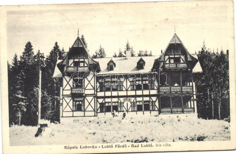 Lublófürdő, Kúpele Lubovna; Iris villa (EK) https://www.darabanth.com/hu/266-Gyorsarveres/266.0/Kepeslapok/Felvidek~300059/Lublofurdo-Kupele-Lubovna-Iris-villa-EK~II1333823