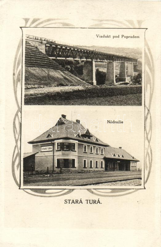 Leírás: Ótura, Stará Turá; vasúti híd, vasútállomás / railway station and viaduct, Art Nouveau
