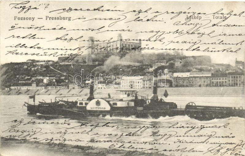 Pozsony, Bratislava; látkép a várral és a Luitpold gőzössel / general ... https://www.darabanth.com/hu/266-Gyorsarveres/266.0/Kepeslapok/Felvidek~300059/Pozsony-Bratislava-latkep-a-varral-es-a-Luitpold-gozossel-general-view-with-the-castle-and~II1313858