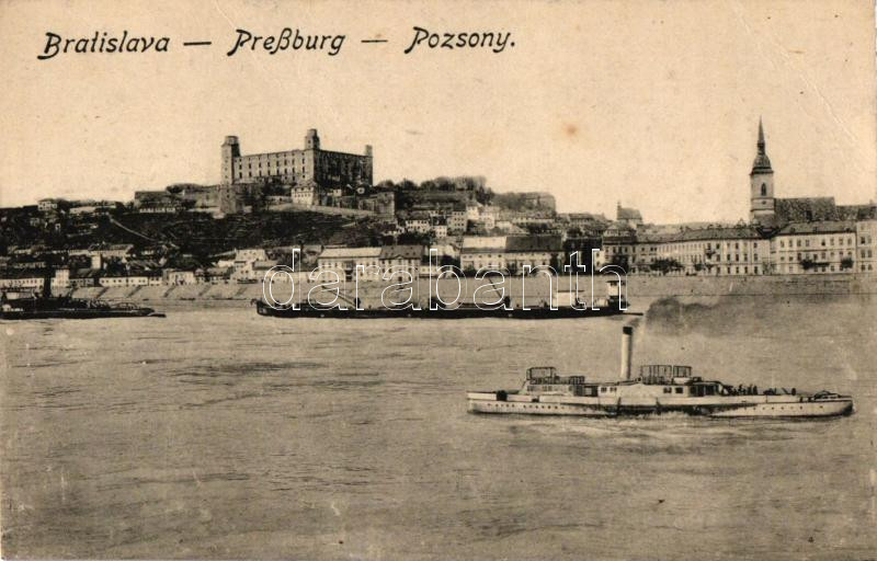 Pozsony, Pressburg, Bratislava; vár, gőzhajó, uszály / castle, steamsh... https://www.darabanth.com/hu/266-Gyorsarveres/266.0/Kepeslapok/Felvidek~300059/Pozsony-Pressburg-Bratislava-var-gozhajo-uszaly-castle-steamship-barge-vagott-cut~II1316153
