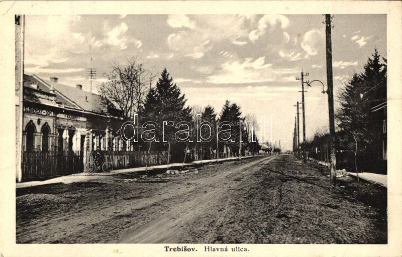 Leírás: Tőketerebes, Trebisov; Fő utca, Vendéglő, Kávéház, Szlovák ház / Hlavna ulica, Slovensky Dom / main street, guest house, cafe, Slovakian house (EK)