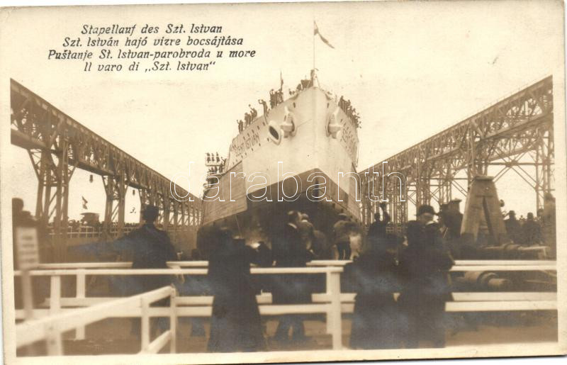 A Szent István hajó vízre bocsátása, Stapellauf des Szt. Istvan / Hung... https://www.darabanth.com/hu/266-Gyorsarveres/266.0/Kepeslapok/Hadihajo~300085/A-Szent-Istvan-hajo-vizre-bocsatasa-Stapellauf-des-Szt-Istvan-Hungarian-battleship-launchi~II1335295
