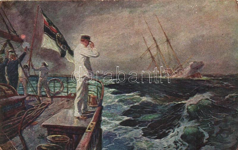 Leírás: Der Letzte Gruss / WWI German battleship, SMS Emden and SMS Unetha s: Prof. Hans Bohrdt (EK)