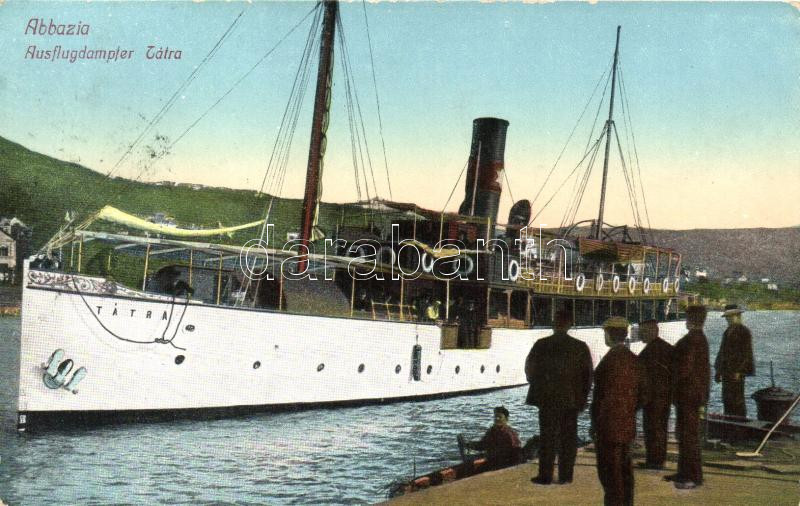 Tátra gőzös Abbazia kikötőjében / Ausflugdampfer Tátra / SS Tátra https://www.darabanth.com/hu/266-Gyorsarveres/266.0/Kepeslapok/Hajo~300086/Tatra-gozos-Abbazia-kikotojeben--Ausflugdampfer-Tatra-SS-Tatra~II1321130