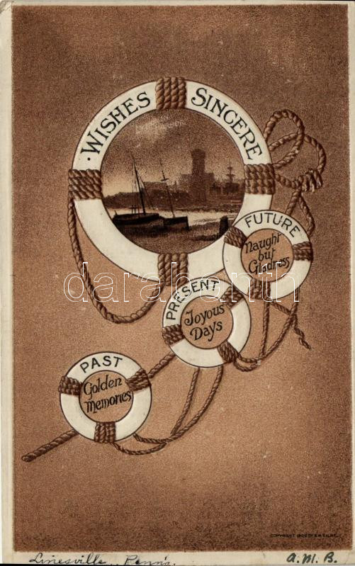 Wishes Sincere / Greeting card for ship travel, Emb. litho (EK) https://www.darabanth.com/hu/266-Gyorsarveres/266.0/Kepeslapok/Hajo~300086/Wishes-Sincere-Greeting-card-for-ship-travel-Emb-litho-EK~II1313682