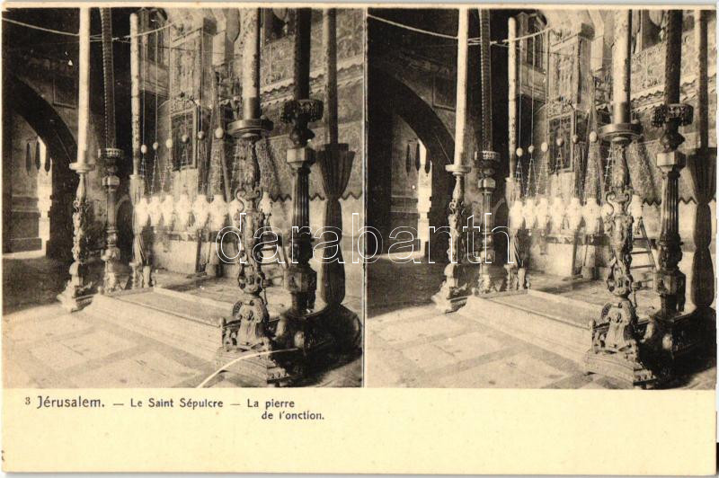 Leírás: Jerusalem, Le Saint Sépulcre, La pierre de l'onction / The Holy Sepulcher, Stone of the Anointing, interior, stereo postcard