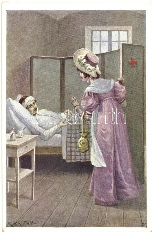 Injured Hussar visited by his wife, B.K.W.I. 223-5, s: R. Kratky https://www.darabanth.com/hu/266-Gyorsarveres/266.0/Kepeslapok/Katonai~300098/Injured-Hussar-visited-by-his-wife-BKWI-223-5-s-R-Kratky~II1217486