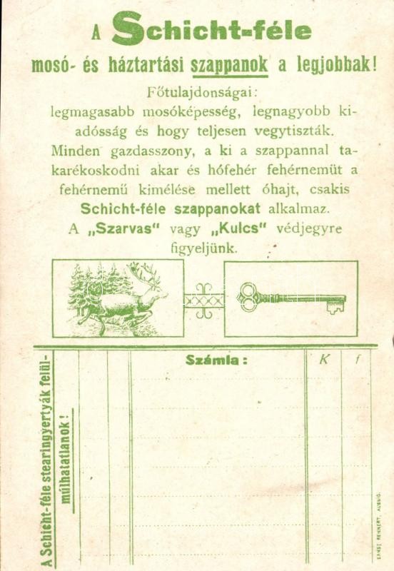 17 db RÉGI városképes reklám képeslap, sok nem képeslaphátúval, több lap hátoldalán a 'Schicht-féle mosó- és háztartási szappan' reklámmal, vegyes minőség több erősen vágott lappal / 17 old town view advertisment postcards, on some of the cards Schicht's soap advertisment, lots of (nonPC), mixed quality with few heavily cut cards