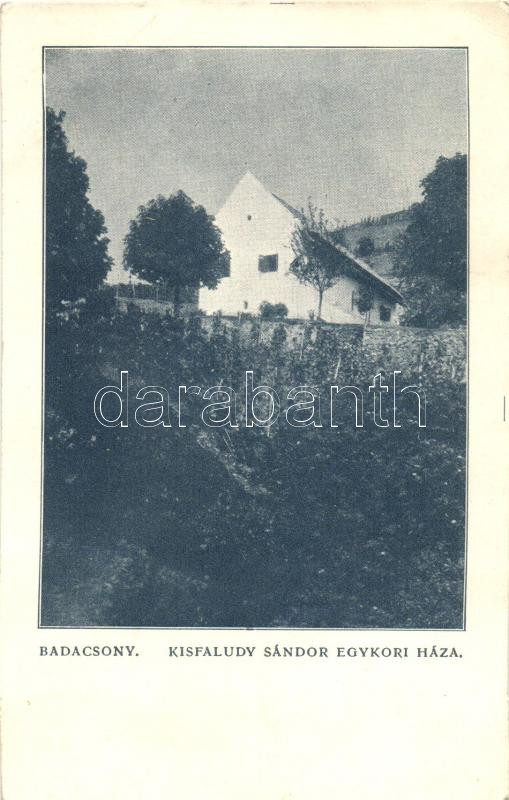 Badacsony, Kisfaludy Sándor egykori háza; a Balatoni Szövetség kiadása https://www.darabanth.com/hu/266-Gyorsarveres/266.0/Kepeslapok/Magyarorszag~300057/Badacsony-Kisfaludy-Sandor-egykori-haza-a-Balatoni-Szovetseg-kiadasa~II1333053