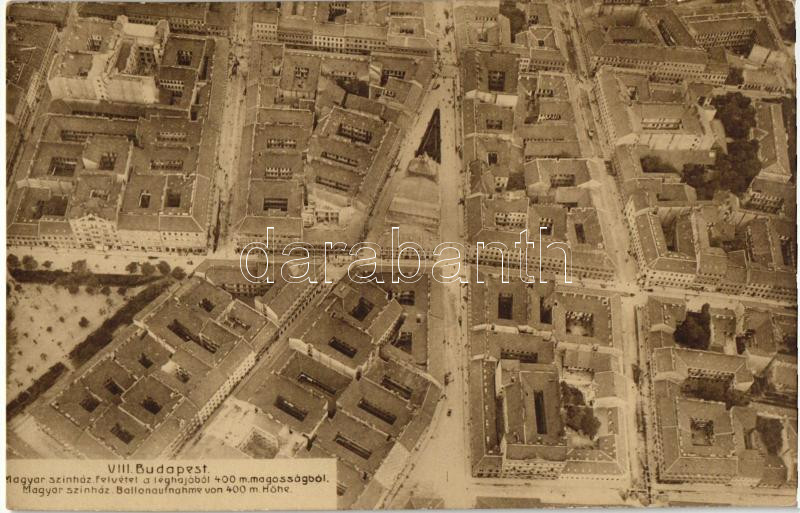 Leírás: Budapest VII. Magyar színház, Kral Sándor tüzérkapitány felvétele léghajóból, 400 m magasságból