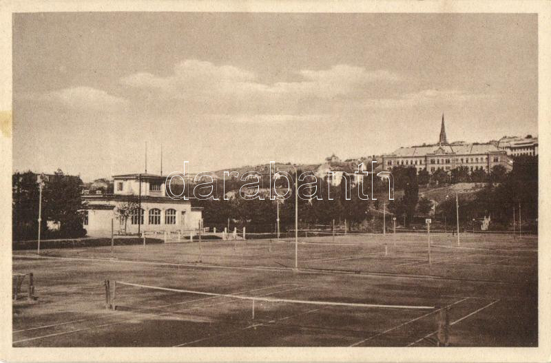 Leírás: Budapest XI. Lágymányos, Horthy Miklós út, teniszpálya, Gellért-hegy, Feneketlen-tó