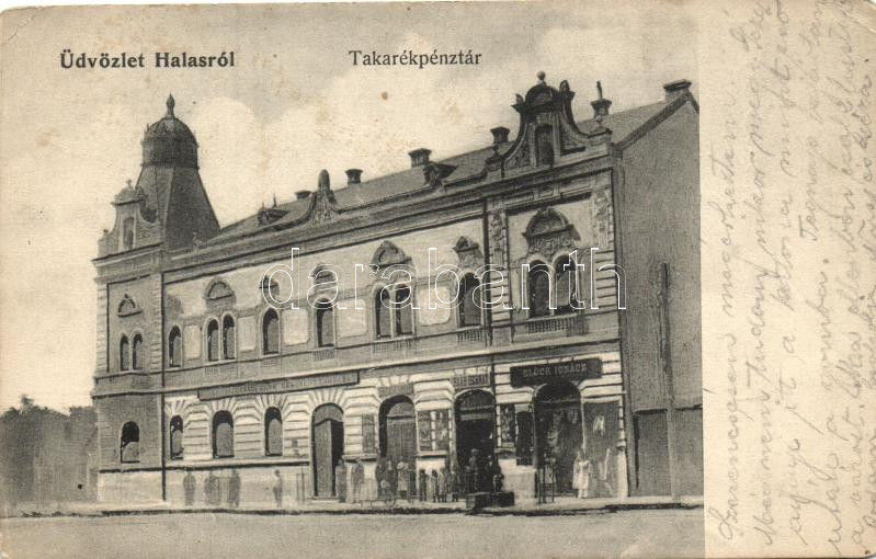 Leírás: Kiskunhalas, Takarékpénztár, Raáb Bernát, Glück Ignácz kereskedései; Raáb Bernát kiadása (EK)