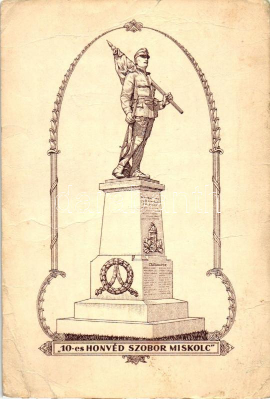 Miskolc, 10. Honvéd gyalogezred szobra (fa) https://www.darabanth.com/hu/266-Gyorsarveres/266.0/Kepeslapok/Magyarorszag~300057/Miskolc-10-Honved-gyalogezred-szobra-fa~II1329556