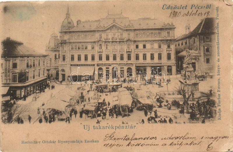 Leírás: Pécs, Új takarékpénztár épülete, kiadja Fischer Ferencz (b)