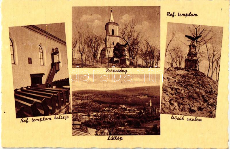 Perőcsény, Református templom és belső, Hősök szobra https://www.darabanth.com/hu/266-Gyorsarveres/266.0/Kepeslapok/Magyarorszag~300057/Perocseny-Reformatus-templom-es-belso-Hosok-szobra~II1332708