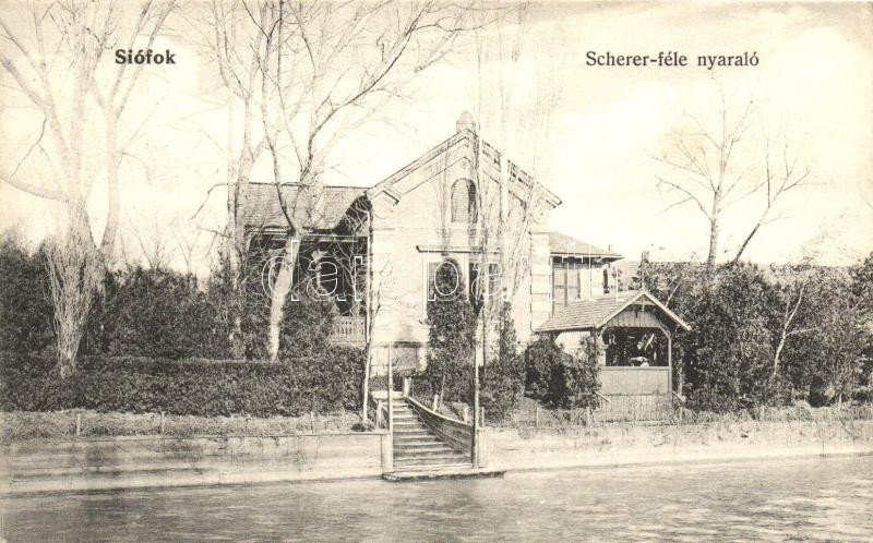 Siófok, Scherer-féle nyaraló https://www.darabanth.com/hu/266-Gyorsarveres/266.0/Kepeslapok/Magyarorszag~300057/Siofok-Scherer-fele-nyaralo~II1332571