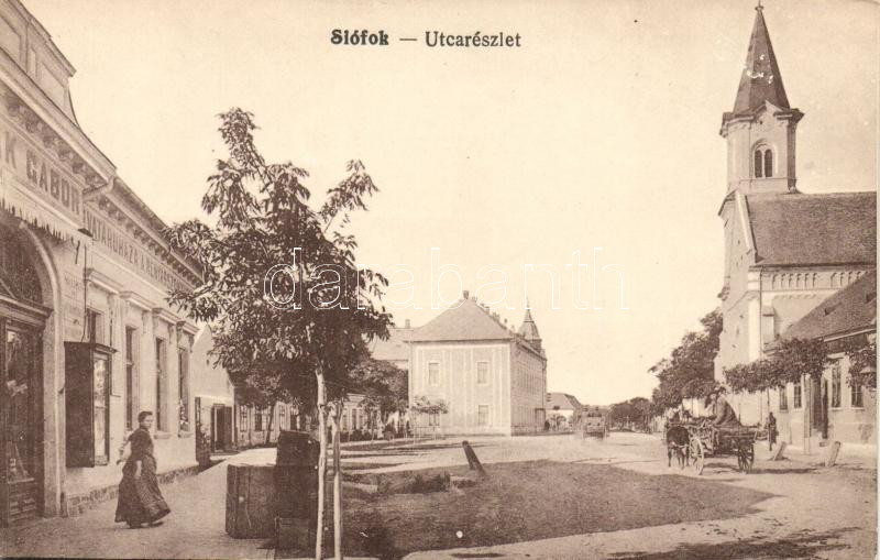 Leírás: Siófok, utcarészlet, '... Gábor divatáruháza a menyasszonyoknak' (kis felületi sérülés / minor surface damage)