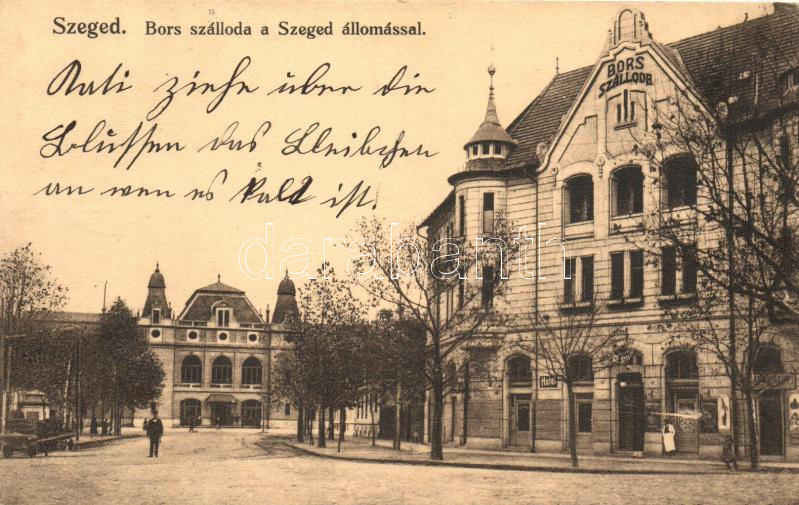 Szeged, Bors szálloda, vasútállomás (EB) https://www.darabanth.com/hu/266-Gyorsarveres/266.0/Kepeslapok/Magyarorszag~300057/Szeged-Bors-szalloda-vasutallomas-EB~II1332485