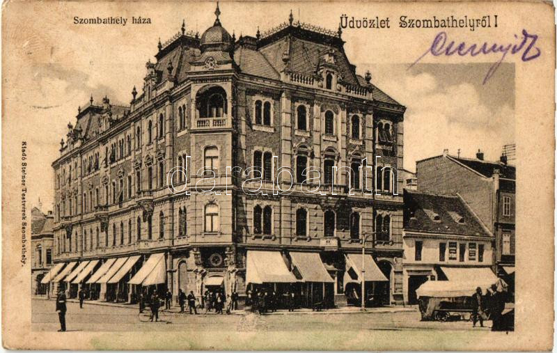 Leírás: Szombathely, Szombathely háza, kiadja Steiner Testvérek (ázott sarok / wet corner)