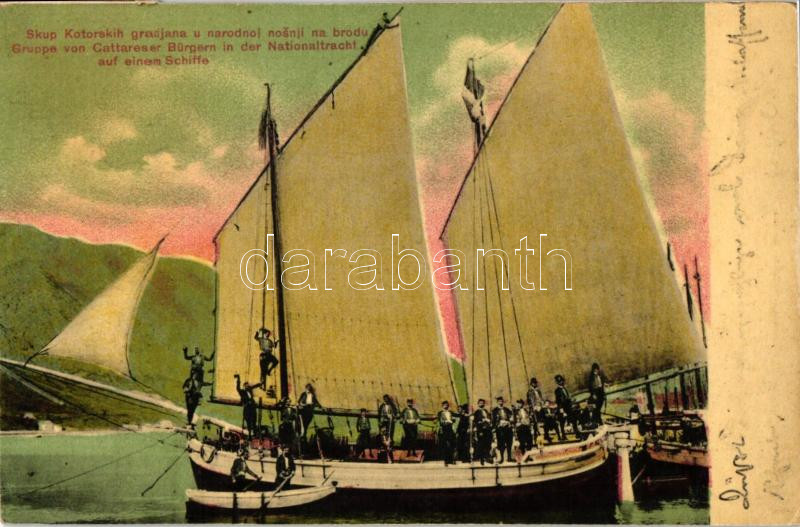 Kotor, Cattaro; People in National costume on board, ship (r) https://www.darabanth.com/hu/266-Gyorsarveres/266.0/Kepeslapok/Montenegro~300031/Kotor-Cattaro-People-in-National-costume-on-board-ship-r~II1333394