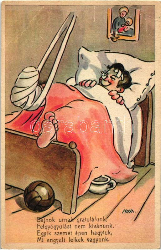 Sérült futball játékos az ágyban, humoros képeslap / Injured football ... https://www.darabanth.com/hu/266-Gyorsarveres/266.0/Kepeslapok/Sport~300097/Serult-futball-jatekos-az-agyban-humoros-kepeslap-Injured-football-player-in-bed-Italian-a~II1330801
