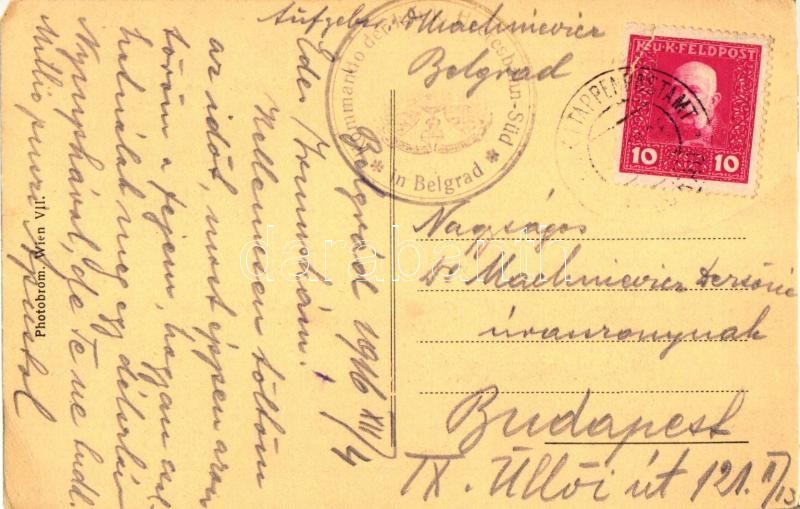 Leírás: Belgrade, Festung / fortress, steamship, 'Kommando der k.u.k. Heeresbahn-Süd' So. Stpl. (EB)