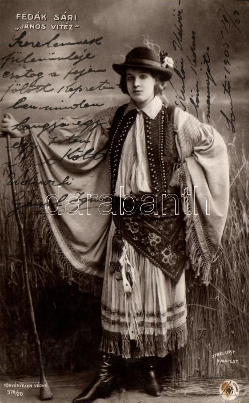 Fedák Sári; 'János Vitéz', Strelisky No. 376/20. (kopott sar... https://www.darabanth.com/hu/266-Gyorsarveres/266.0/Kepeslapok/Szinesz~300090/Fedak-Sari-Janos-Vitez-Strelisky-No-37620-kopott-sarkak-worn-edges~II1222290