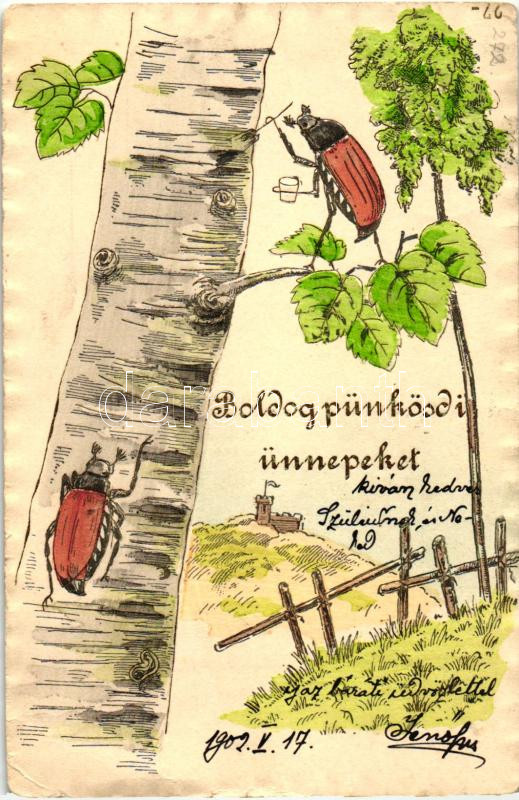 Pünkösd / Pentecost, may bugs, Emb. (fa) https://www.darabanth.com/hu/266-Gyorsarveres/266.0/Kepeslapok/Udvozlolapok-Unnepek~300078/Punkosd-Pentecost-may-bugs-Emb-fa~II1333058