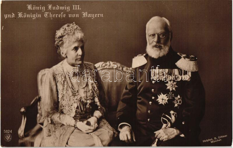 König Ludwig III, Königin Therese von Bayern (Rb) https://www.darabanth.com/hu/266-Gyorsarveres/266.0/Kepeslapok/Uralkodo-Politikus~300082/Konig-Ludwig-III-Konigin-Therese-von-Bayern-Rb~II1316311