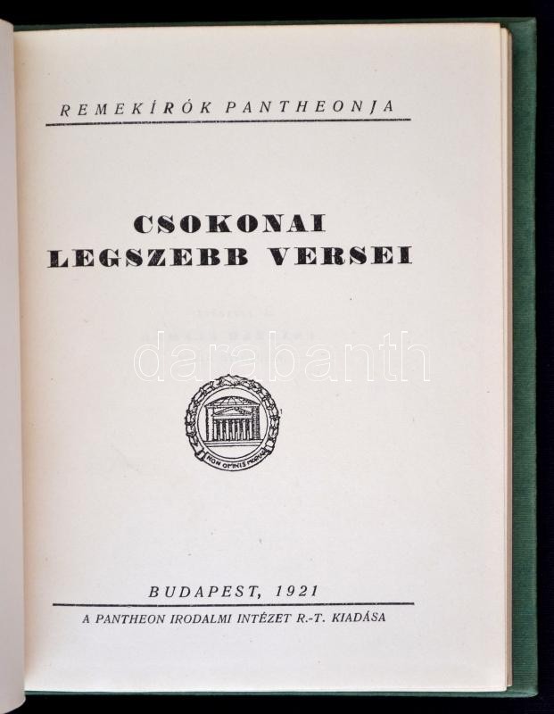 A Remekírók Pantheonja c. sorozat 4 db szép állapotú könyve: Csokonai: Legszebb versei, Dorottya. Schiller, Shakespeare. Bp., 1921. Pantheon, Kiadói papírkötésben