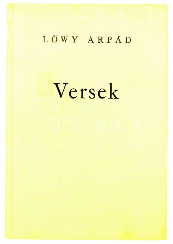 Lőwy Árpád: Versek. Válogatták és sajtó alá rendezték Lőwy Árpád tiszt... https://www.darabanth.com/hu/266-Gyorsarveres/266.0/Konyvek/Konyvek-Egyeb-ritkasagok~500026/Lowy-Arpad-Versek-Valogattak-es-sajto-ala-rendeztek-Lowy-Arpad-tiszteloi-Kiadoi-kar~II1327006