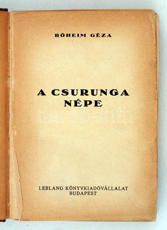 Róheim Géza: A csurunga népe. Budapest, é.n., Leblang Könyvkiadóvállak... https://www.darabanth.com/hu/266-Gyorsarveres/266.0/Konyvek/Konyvek-Egyeb-ritkasagok~500026/Roheim-Geza-A-csurunga-nepe-Budapest-en-Leblang-Konyvkiadovallakat-Kisse-viseltes-fe~II1335529
